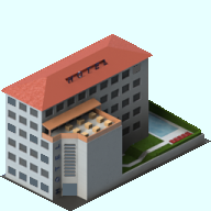 Zitat:Dein Hotel ragt über eine Kachel ( 128 mal 128 ) hinaus, womit wir zwangsläufig auf eine Kachelgröße von 128 mal 256, 256 mal 128 oder etwa 256 mal 256 kommen. Letzteres ist die Version, die für's Hotel gewählt wurde.
