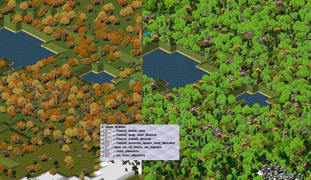 Das hängt ganz davon ab, welche Baumdichte in der simuconf.tab für Wälder vorgesehen ist. Außerdem wird nur alls über 3 Bäume als Wald angezeigt. Ich werde dem aber noch mal nachgehen.