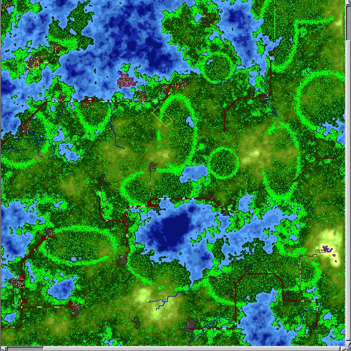 Die Simutransbäume säen sich nach 32 Jahren aus, wenn nicht zuviel Bäume drumherumstehen. Das führt scheinbar zu diesem Verhalten. Und dazu, dass nach 100 Jahren die Karte von einem Urwald bedeckt ist.