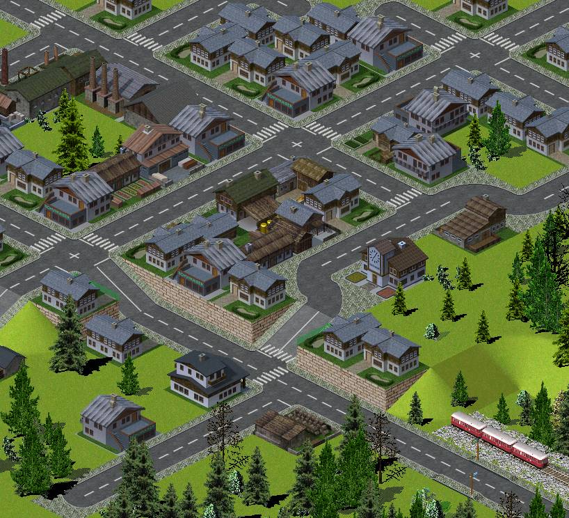 Die Screenshots zeigen zwei Situationen aus dem Alpenland, zum einen in der ersten Hälfte des 20. Jahrhunderts, zum anderen eine aktuelle Ansicht. Alle Gebäudegrafiken stammen von Lemuria, der stets vier Ansichten angefertigt hat, wodurch die Städte besonders realistisch wirken.