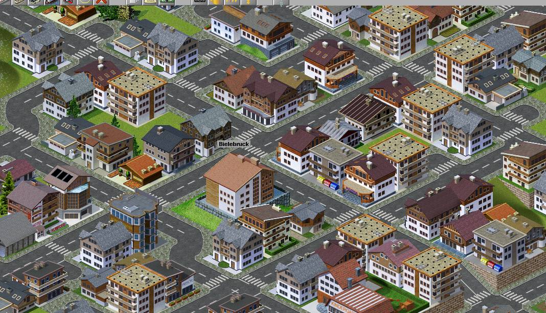 Bielebruck in der Alpinen Zone zeigt sich von vier Seiten - alle Gebäude haben vier Ansichten und tauchen ausschließlich in dieser Zone auf.