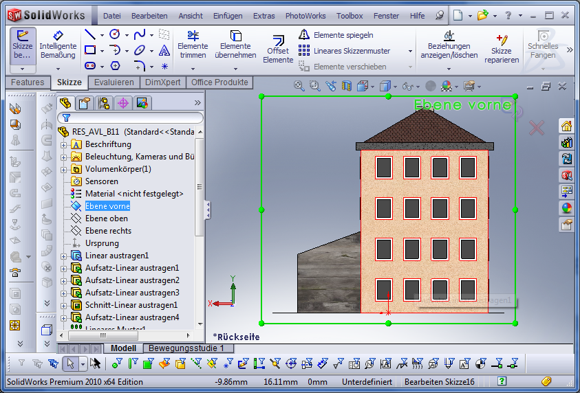 Verschieben Werkzeug auswählen und das Gebäude verschieben und zwar so: