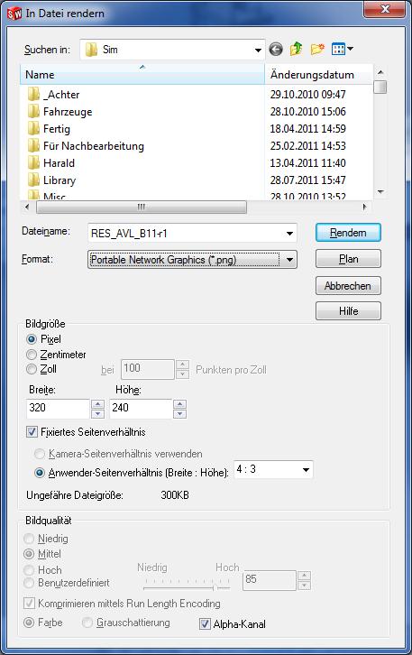 Den Renderexporten fehlt es jetzt noch an der richtigen Größe und auch sind noch jede Menge Teiltransparenzen vorhanden, die Simutrans nicht verarbeiten kann. Hier Schritt für Schritt die Anleitung: