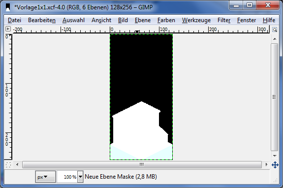 Dabei aufpassen, dass keine Teiltransparenzen entstehen (also Grautöne in der Maske)
