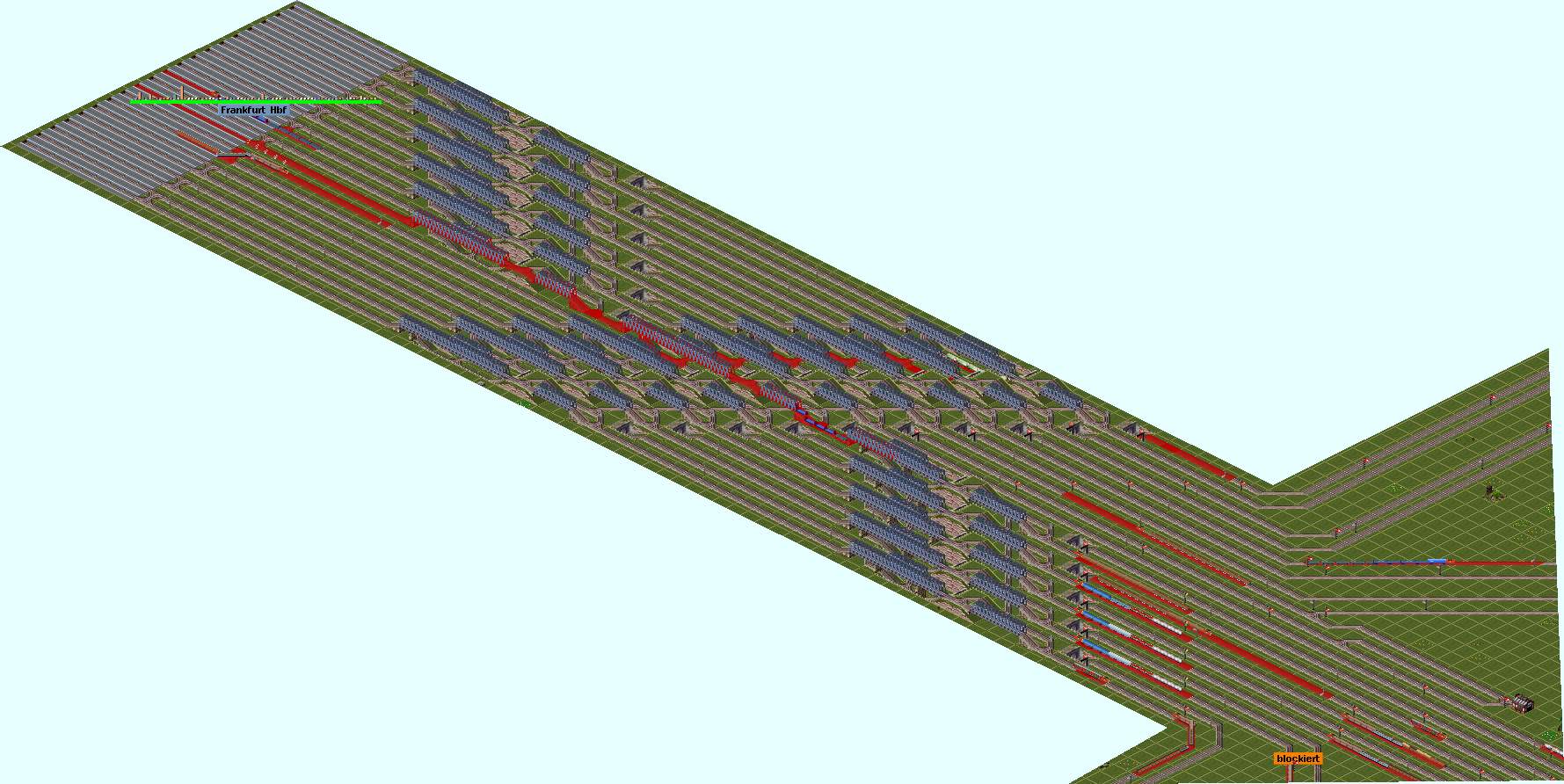 - Die Anlage mit dem Zentralbahnhof wäre eigentlich ideal für reine Umsteigeverbindungen über Frankfurt. Alle Züge fahren von den Aussenbahnhöfe nach Frankfurt und zurück. So blockieren sich sehr viele Züge unnötig.