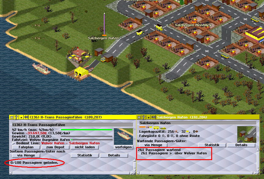 Simu Hafenproblem 03 Zielhafen, auch dorts sind unmengen Passagiere, aber das Schiff ist dort leer weggefahren.