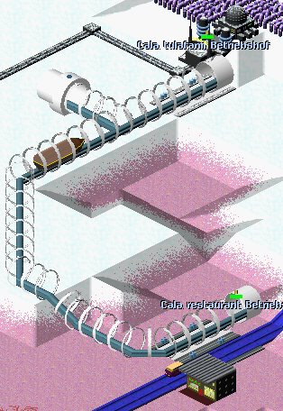 Inzwischen gibt es auch das versprochene Frachtfahrzeug für die Röhrenbahn. Mit dem Frachtbahnhof habe ich allerdings so meine Schwierigkeiten, vor allem wegen des FrontImage-Problems. Deshalb habe ich es erstmal bei einem einfachen Frachthalt belassen, der an die Schwebstraßenversion angelehnt ist.
