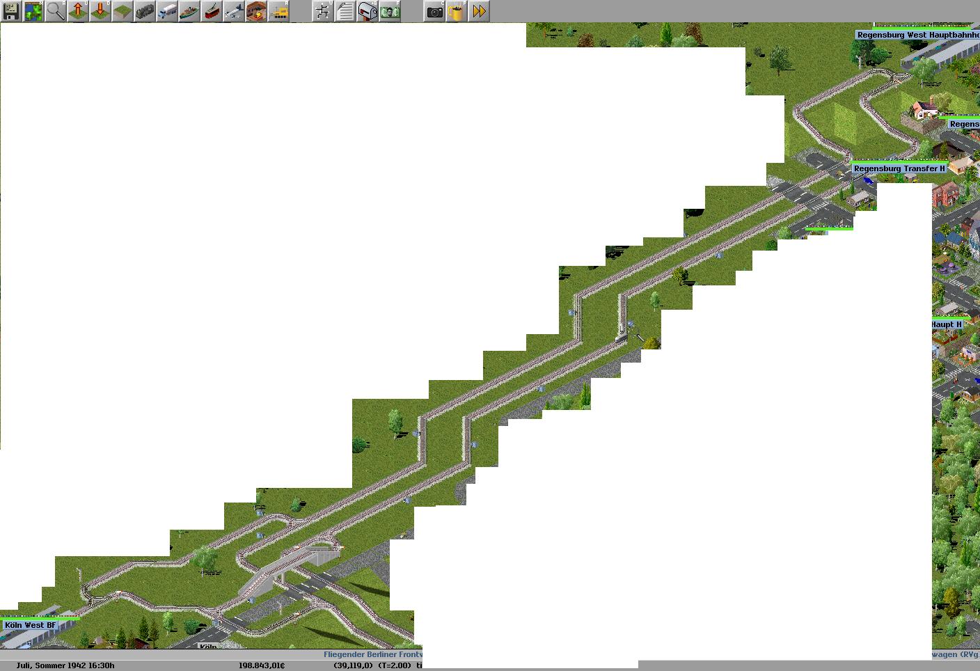 ich habe ein screenshot dazu gehängt. der zug fährt vom oberen rechten bahnof nicht zu dem ganz links. auf dem rückweg soll er die brücke nehmen ( ich baue sehr gerne brücken und normalerweise klappt es IMMER). der zug ist dieser Zeppelin express zug oder wie der heißt. der erste im personenwagen menü der nur aus 2 wagen bestehen kann und muss.