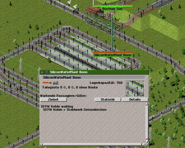 Dabei nehmen die Linien auf dem Rückweg die Kohle mit (an was man alles denken muss :evil: ). Ich habe jetzt noch ne Linie vom Silicon zum Stahlwerk eingerichtet. Das ist nun hämmungslos überfüllt. Damit muss ich jetzt wohl leben.
