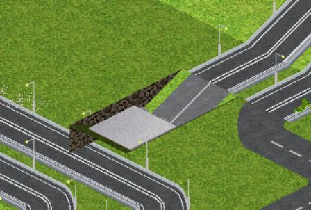 Wenn man die Aufschüttungen benutzt, und den Erdboden absenkt und eine von links nach rechte abfallende Rampe baut, sieht es manchmal so aus, als schaue die Rampe aus dem Loch heraus, wie auf den Bildern zu sehen ist. Es passiert aber nicht immer, so mußte ich für die Demo-Bilder mehrere Versuche machen. Es ist auch nur ein Fehler kosmetischer Natur, denn es funktioniert ansonsten alles.