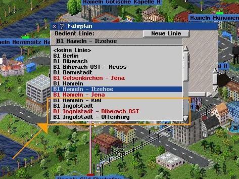 Linienfenster ist geöffnet. Jedoch ist es nach unten hin (y-Achse) so klein, dass die Auswahlliste der Linien (wenn man sie aufklappt) über die Grenze des Fensters hinausragt. Ich versuche, den untersten Eintrag auszuwählen. (Screenshot nicht verfügbar, da im Internetcafe)