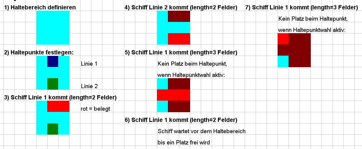 Damit das Schiff einen beliebigen freien Haltepunkt anfährt kann das nötige "Auswahlsignal" ja als Hafengebäude oder Boje dargestellt werden oder wenn erwünscht so wie beim Flughafen einfach automatisch aktiviert sein.