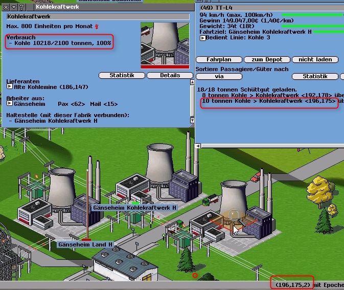 "just in Time" funktioniert nicht immer richtig. Bei meinem Großkraftwerk mit 3 Blöcken ist es gut zu erkennen. Beim linken (neueste) funktioniert es einwandfrei, beim rechten dabei überhaupt nicht. Dort ist das Eingangslager immer mit min. 10200 Kohle gefüllt. Wenn dann bei der Kohlegrube wieder Kohle bereitgestellt wird, sind es oft über 900 Tonnen. Obwohl noch über 10000 Tonnen im Eingangslager liegen. Das mittlere Kraftwerk hat eher Probleme überhaupt in Betrieb zu bleiben, es bekommt oft zu weing Kohle.