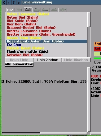 Die wartende Fracht wird in der Linienverwaltung ohne Umbruch, in einer Zeile angezeigt. Der Scrollbalken reicht auch nicht bis ans Ende der Anzeige.