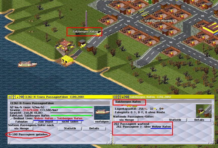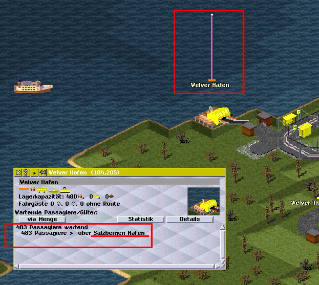 Simu Hafenproblem 03 Zielhafen, auch dorts sind unmengen Passagiere, aber das Schiff ist dort leer weggefahren.