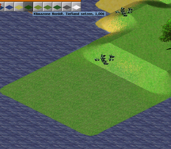 Als erstes das Wasser mit der Klimazone die der Umgebung entspricht, oder auch der Wahl überziehen. Werkzeug dafür gibt es im Geländebaumenü. Dann einfach den Grund absenken, wie gewohnt. Nach Lust bebauen.