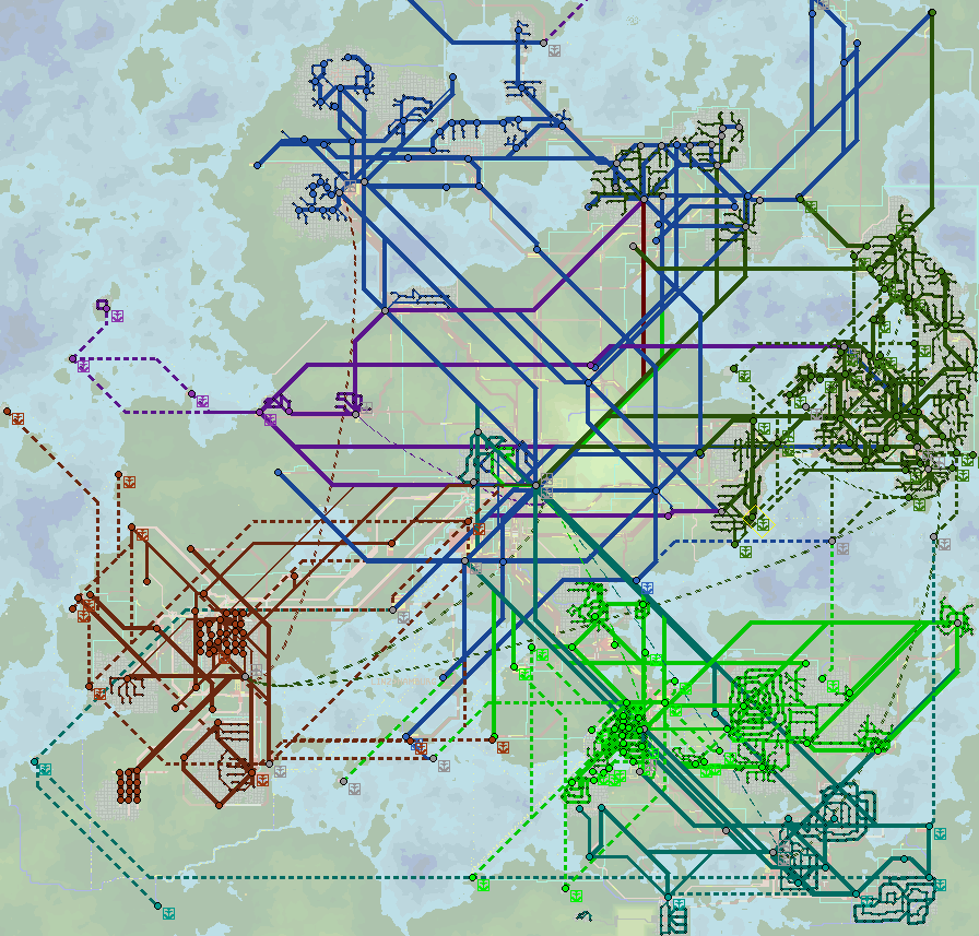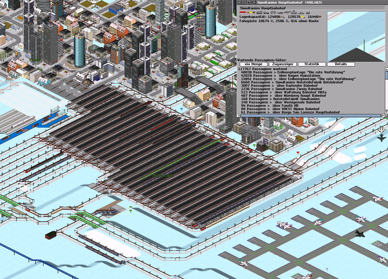 - papa69 - 15-08-2013 ja...das stimmt. Jedoch, wenn ich dieses Pakset lade und auf online-spielen gehe, bekomme ich vom Server die Antwort, das mein Pak-Set NICHT kompatibel ist (also rot) und eine Verbindung zum Server ist nicht möglich ?( eigentlich schade...da hier ja SOVIEL über gerade DIESES Spiel "geredet" wird... - The Transporter - 15-08-2013 Schau mal die ersten Seiten hier durch, da müßte irgendwo der Link dazu sein. - Citarofahrer - 15-08-2013 Irgend wo auf den 1. 5 Seiten oder so - Taurus - 15-08-2013 Ich hab mal vorsichtshalber die restlichen Slots mit Passwörtern geschützt. - Ramagani - 15-08-2013 Für alle die gerne Über das Spiel gucken wollen. https://www.dropbox.com/s/u7c6drre02idfy5/simutrans_server%20pak192.comic.zip Das ist das Pakset welches benutzt wird. Die Rev ist die 6520. Ich versuche das nochmal auf files.simutrans hoch zu laden. Leider macht er da aber mucken grade deswegen über Dropbox erstmal - PappeTeeMaster - 16-08-2013 das jahr 1997 neigt sich dem ende, daher mal wieder ein aktueller netzplan für alle interessierten. Komplettnetz Bierinselnetz Hagen Mainstation Betrieb auf 7 Ebenen, der Berliner Hauptbahnhof kann einpacken. Die Statistik sagt 2343 Züge, 726.038 Abgefahrene und 738.875 Angekommene Passagiere was ist passiert? durch das fehlen von flemmbrav kam es häufig zu totalzusammenbrüchen im bereich karlsruhe. fietin hat ein eigenes unternehmen gegründet. auf der bierinsel wird gegen passagierstaus an den knotenpunkten gekämpft, was zu einem 7-ebenen-hauptbahnhof geführt hat. monatlich darf ich nun 10.787.068,56 credits instandhaltung bezahlen, was bei einnahmen von monatlich 364Millionen zu verkraften ist. ramagani ist aus dem spiel, seine städte sind durch taurus und mich an das netz angebunden wurden. Aktuell läuft der Ausbau des Postbereiches auf der Bierinsel, es sind noch weite teile ohne versorgung. um meine passagiere an die anderen anzuschließen fahren nun monatlich pro richtung 181 TGV mit je 1090 Passagieren, was die strecke langsam aber sicher an ihre grenzen bringt. zusätzlich wurde der flughafen ausgebaut, um auch hier einen großen teil der leute abzufertigen. leider komme ich nun an einem intensiven schiffverkehr nicht mehr vorbei, ohne viele der fabriken in meinem gebiet nicht von der versorgung abzuschneiden, bzw. um die post in die beiden städte vor die insel zu bekommen. - Flemmbrav - 16-08-2013 Wärst du so lieb und könntest solche tollen Berichte gleich für die 3 (4) großen Knoten machen? Mich interessiert da vor allen, wie viel Passagiere wo lang wollen