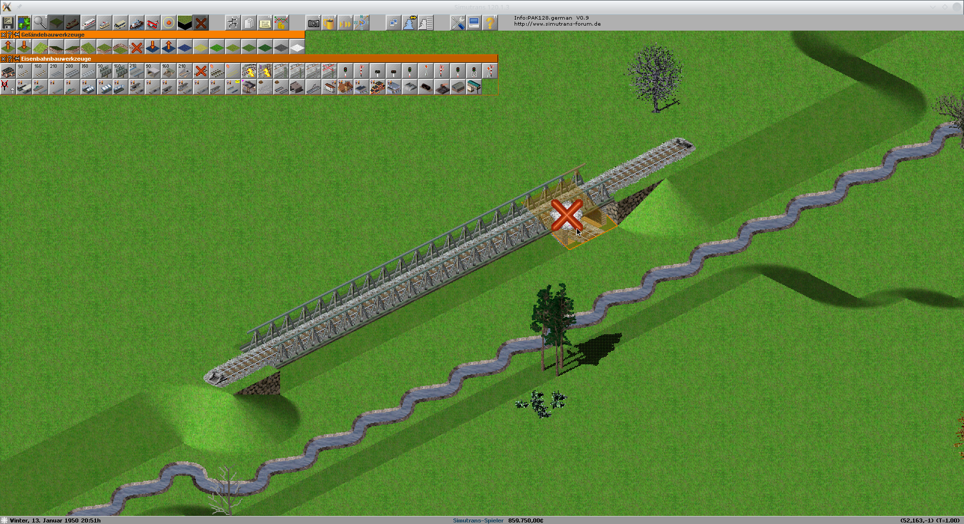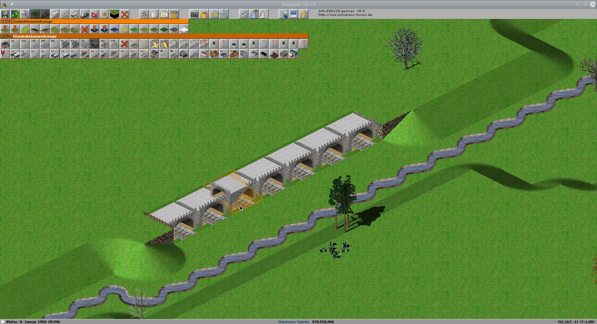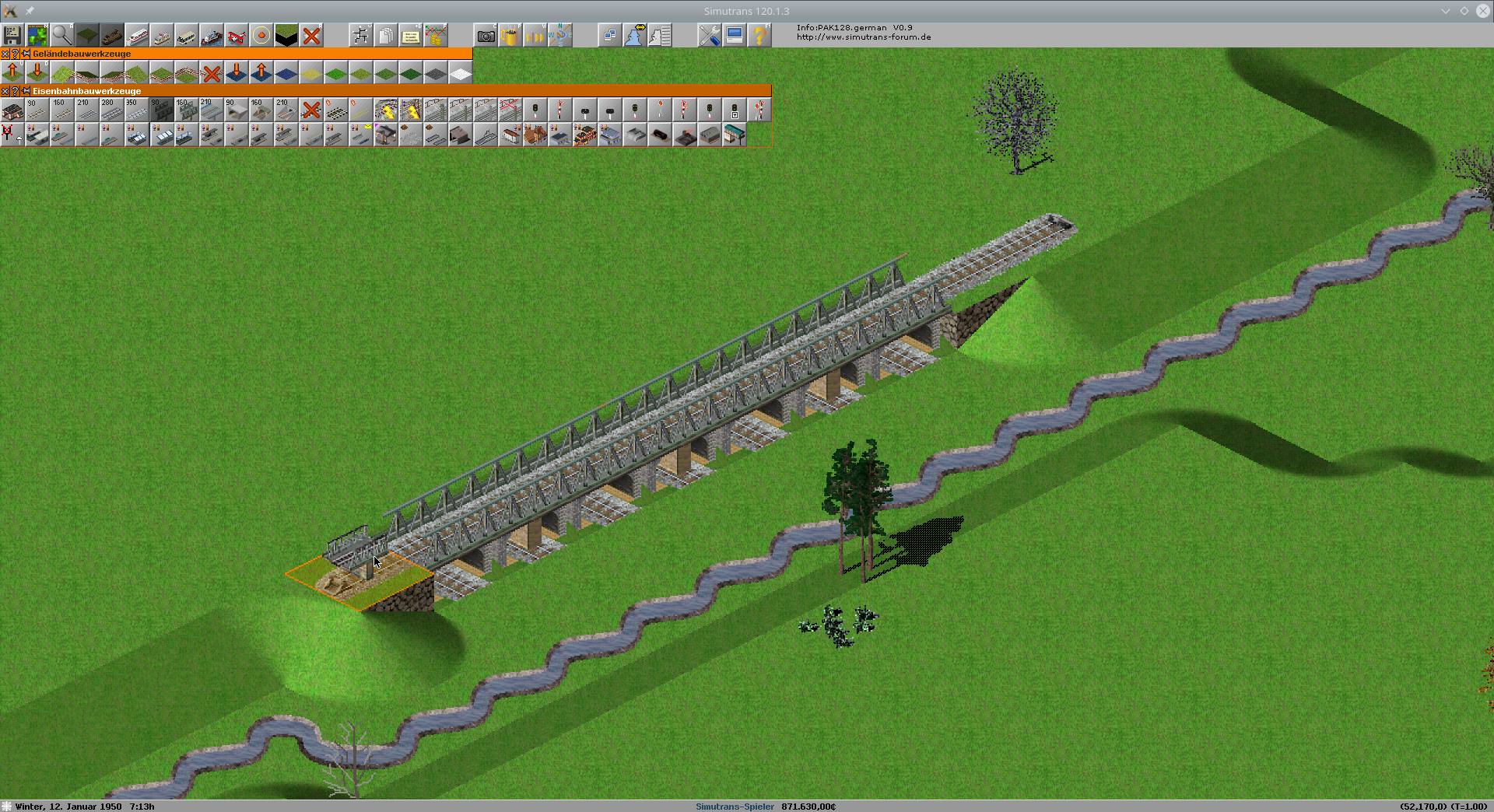 RE: Hochbahn und Straße am Hang - Leartin - 14-09-2017 Ich frage mich halt auch, ob so eine Hangbahn wirklich sinnvoll ist. Spielerisch wohl nur, wenn man damit angenehm über eine Hügellandschaft kommt, nicht nur über exakt parallele Hänge. Also Hänge generell ignoriert werden und nur die Höheninformation darunter Beachtung findet. Optisch auch eher nur, wenn es passende Pfeiler dazu gäbe. Also, aus meiner Sicht spricht nicht direkt was dagegen, aber da wüsste ich für aufgeständerte Strecken sinnvollere Ergänzungen (zB. Angaben, ob eine Strecke eine weiter Strecke obenauf erlaubt, und ob parallel darunter gebaut werden darf, oder nur gekreuzt, oder gar nicht,...) RE: Hochbahn und Straße am Hang - The Transporter - 14-09-2017 Die gezeigte Version wäre dann also die Lösung für die Hangkante. Wenn man einfach nur zwischen 2 Hänge, am Hang queren will, wie bei den obigen Screenshots, kann man auch direkt eine Brücke verwenden, Richtig interessant wird es bei Situationen wie im unteren Screenshot. Es ist immer wieder interessant, was man mit kleinen oder auch größeren Tricks anstellen kann.