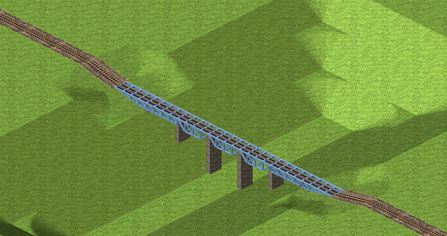 um die halbe Steigung einzuhalten, müssten Brückenrampen 2 Tiles lang sein. Würde ich dann aber nicht mehr für Brücken einsetzen, sondern als Feature für aufgeständerte Strecken (beliebig hoch aufgeständert mit Höhenüberwindung wie bei Tunnels).