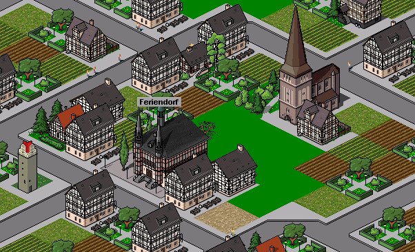Die Häuser sind alle von Alexander Brose. Der Turm, der Park und die Äcker und Wiesen von mir.