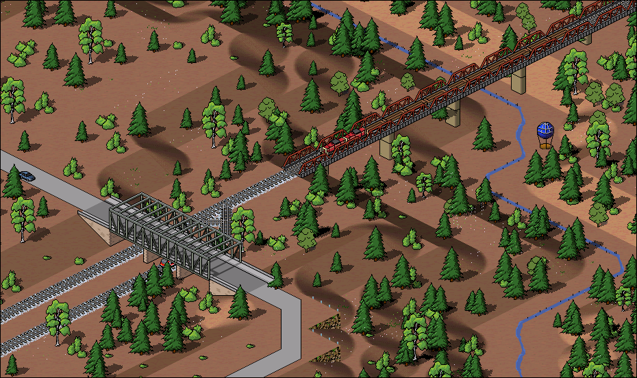 Zugkreuzung vor einem natürlichen Nadelöhr. Unter der Brücke versteckt wartet die Bahn auf den Güterzug, der die Brücke just überquert. Im Schneckentempo - versteht sich.