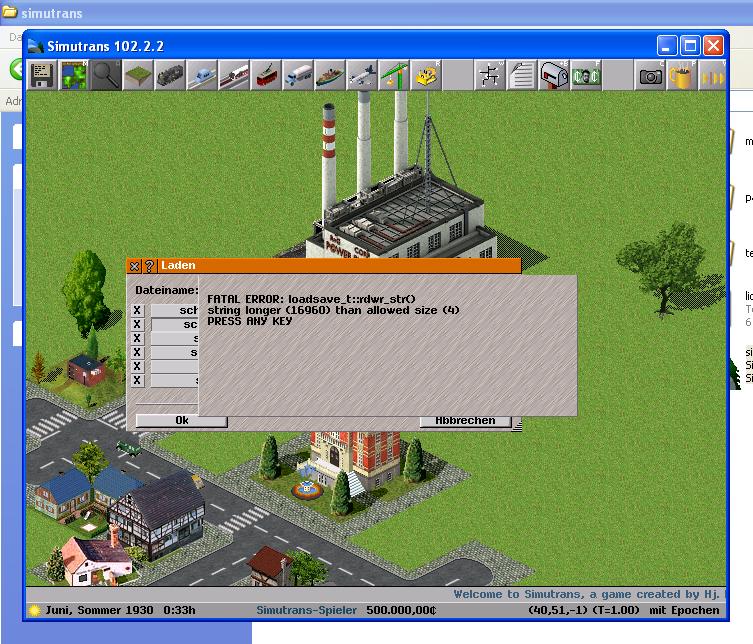 Obige Fehlermeldung deutet auf, zur verwendeten Simutransversion inkompatible Savegames hin. Entweder sind sie zu alt oder zu neu, jenachdem mit welcher Version sie erstellt wurden.