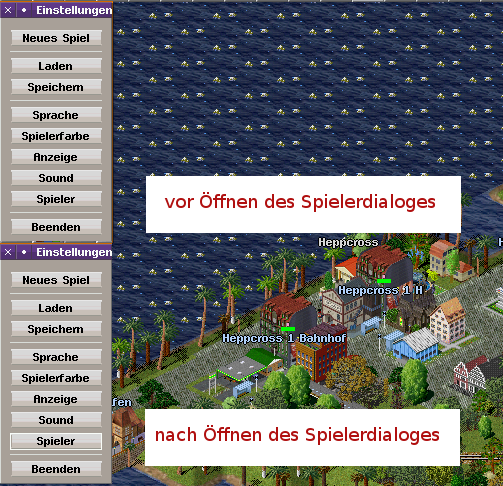 Wenn man im Eistellungsmenu eine Schaltfläche betätigt, einen Dialog öffnet und wieder schließt, bleibt die entsprechende Schaltfläche danach noch hell unterlegt (ist im Standardsimutrans auch so, ist mir aber vorher nie aufgefallen, nur hier, vielleicht wegen des Themas oder der Ausrichtung untereinander mit den Trennstrichen) - nicht schlimm, fällt aber irgendwie mehr auf (Anhang 2).