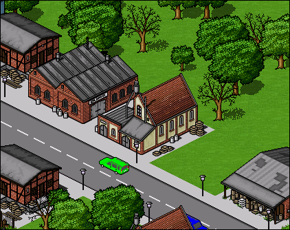 Das ist eine Holzabsauganlage. Unter dem "Kopf" geht es noch weiter runter - musst mal die Grafik etwas vergrößern. Das Rohr trägt die Absauganlage natürlich nicht. Wink Das rechte Eingangstor ist genauso groß wie das linke. Diese Eingänge stellen nur einen Zugang zu den Anbauten dar. Auf der nicht sichtbaren Seite gibt es sicher noch einen höheren Eingang für das Hauptgebäude. Da die Gebäude in Simutrans ja an vier Straßenseiten stehen können, muss man halt - zumindest bei nicht rotierbaren Gebäuden - Kompromisse eingehen. Smile