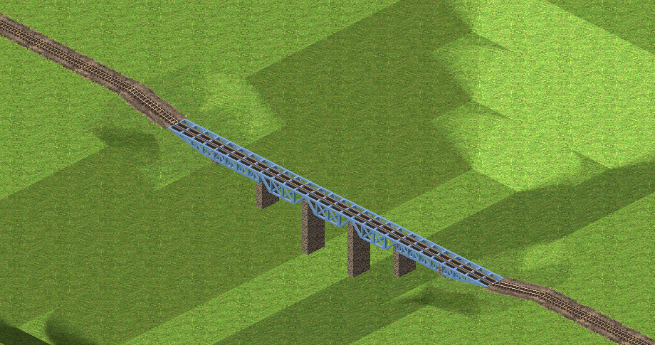 Die hier gezeigte Einkerbung zum Brückenbau ist nicht nötig (oder, um es zum X-ten Mal zu sagen: Es ist von der Spielprogrammierung her nicht nötig, unabhängig von steileren Wegen). Wie mein Screenshot von Pak64 zeigte, können Brücken auch auf den steileren Ebenen beginnen und enden, selbst wenn es keinen entsprechenden Weg für diese Schrägen gibt, indem bei gedrückter Maus gezogen wird. Von Hang zu Hang, nicht vom vorherigen geraden Stück ausgehend, wie du es anschließend versucht hast. Wenn das nicht möglich ist, dann ist DAS ein Bug, den man den 128-Entwicklern melden könnte, der nichts mit den schrägen Wegen an sich zu tun hat.