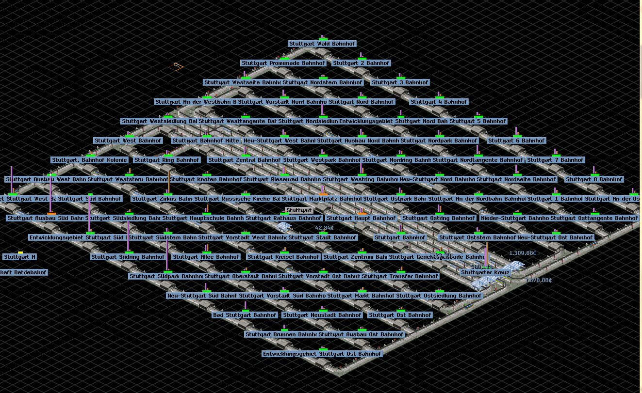 Ich baue unter jede Stadt ein 4 Eckiges U-Bahn Raster.