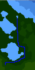 Hier mal einen Screenshot von dem Fluß um den See. Das passiert auf dieser Karte (6) bei erhöhter Anzahl von Flüßen recht oft. Wobei dieser noch recht gut aussieht. Hatte schon welche, wo er vom selben Startpunkt noch weiter um den unteren See, durch die Engstelle zur linken Seite des oberen Sees floß.