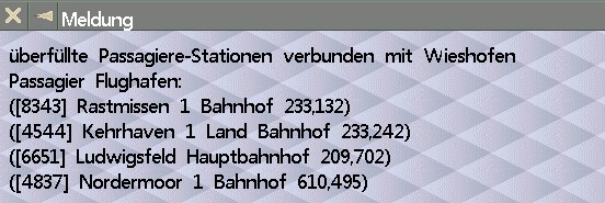 Die Ausgabe zeigt bisher nicht alle überfüllten Stationen an, da die Textlänge der Ausgabe im Meldungsfenster begrenzt ist.
