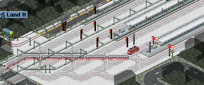 Bahnhof, der nur teilweise elektrifiziert ist. Elektrifizierte Gleise alle belegt - 101 "wählt" sich am Auswahlsignal auf ein freies Gleis (aber ohne Oberleitung) - siehe Anhang.