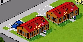 Ich hab auf den Parkplatz des Caefs mal ein Auto gestellt.