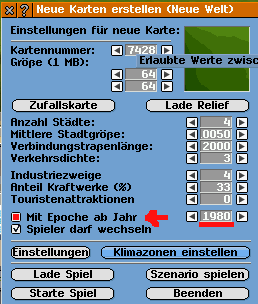Auf dem Bild müsstest du die Option "mit Epoche ab Jahr" aktivieren und anschließend rechts daneben das gewünschte Startjahr einstellen. Dann die neue Karte generieren lassen (natürlich erst nachdem du alles weitere nach deinen Wünschen eingestellt hast).