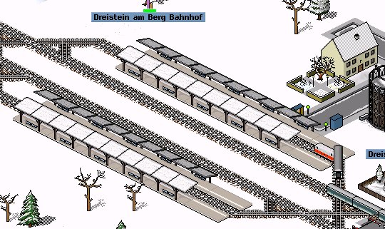 Bauen kann man den Bahnhof auch recht einfach. Zuerst wird der eine Bahnsteig gebaut, dann auf den Durchgangsgleisen je ein Bahnhofsfeld, die verbunden sind. Dann wird der 2. Bahnsteig gebaut. Am Schluß noch die 2 Felder auf den Durchgangsgleisen entfernen und alles sollte prima laufen.