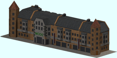 Sodala... die Geschäftsstrasse der alten pakGerman128-Stadt wächst schön langsam... den Dächern hab ich jetzt eine andere Textur verpasst, die nun hoffentlich nicht mehr an Schnee erinnert. Auf dieser Ansicht stimmen die Winkel nicht - ist freihandgedreht und soll nur einen Eindruck geben...