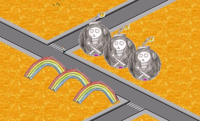 Bombenindustrie und Regenbogenhaus sind fertig.