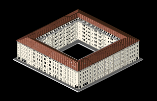 Nur noch eine Ansicht ist zu pixeln. Dann kommen feine Details wie Blumen, Balkonmöbel, Markisen usw. - dann wirken die Gebäude lebendiger. Eine zweite Variante hiervon in weiß mit etwas hellerem Dach sollte schnell gemacht sein. Dann kann ich mich an einem ähnlichen Typ machen, damit etwas Abwechslung reinkommt.