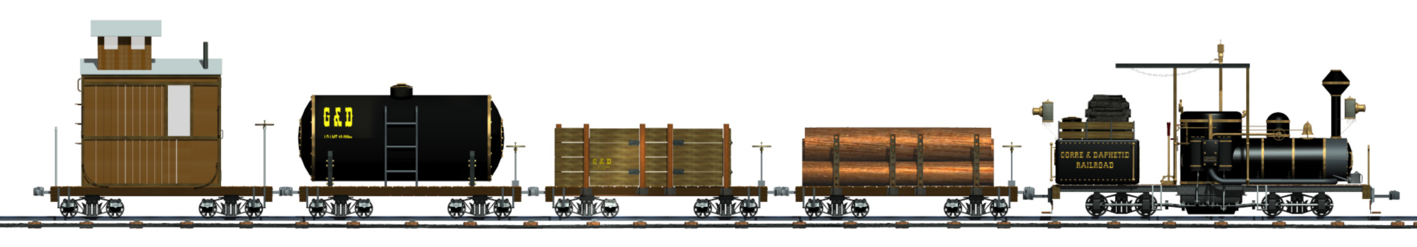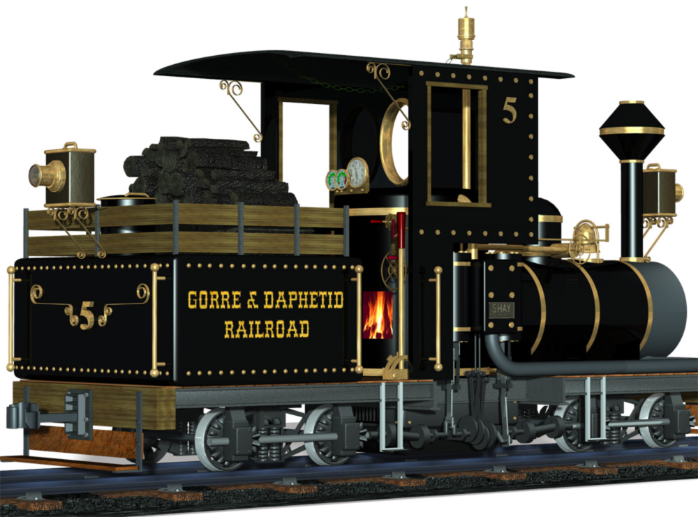 Ich kann konstruieren und rendern, siehe die Bilder unten. (Amerikanische Shay mit passenden Wagen).