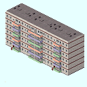 Wenn die Abmessungen zu den vorhandenen Gebäuden stimmen sollen, paßt ein Block genau auf eine Fliese (wir wollten ja keine unterschiedliche Abmessungen anfertigen) Aber erst durch das aneinanderfügen von 3 Fliesen wirkt es erst.