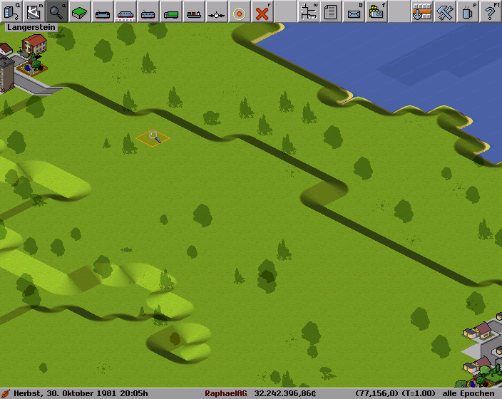 Vielleicht ist da ein Datenfehler im Savegame oder ein ganz spezieller Programmfehler (beides kommt schon mal vor) - kannst Du uns das Spiel mal leihen (hochladen)? So kann ich es nämlich nicht reproduzieren. Es kann mit dem Wegetyp (Straßenbahnschiene) zu tun haben, oder da steht ein Objekt im Weg (unsichtbar?). Ach ja: bitte gib Deine Version von Simutrans und Pak bekannt - am besten, Du besorgst Dir die aktuellsten Versionen, um zu probieren, ob das hilft. Simuconf.tab: unwahrscheinlich als Ursache, aber Du kannst sie ja auch hier zeigen (es gibt allerdings drei Dateien dieses Namens, die nacheinander ausgewertet werden, einmal in Simutrans, einmal in Simutrans/Pak... und einmal in "Eigene Dateien").