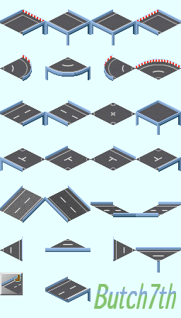 Was die Höhe betrifft musst ich leider Kompromisse eingehen. Das Problem war, dass ich die Autobahngrafiken aus der Vorlage beim Pixeln um 2 Pixel nach oben verschieben musste, um den blauen "Rand" (sozusagen die Bodenplatte, auf welcher die Straße liegt) unter dranzumachen. Die Folge war, dass die gesamte Grafik eben 2 Pixel höher ist, was im Spiel nicht weiter auffällt, solange man nicht direkt eine andere Straße anschließen möchte. Habe zwar versucht, die Differenz im dat-file auszugleichen, aber da kam es dann immer zu den unschönen Brüchen zwischen den einzelnen Grafiken. Es gibt meiner Ansicht nach 2 Lösungen für das Problem: Die Übergänge nicht direkt machen, sondern Brücken (Siehe Anhang) dazwischen bauen. Ist nicht die optimale Lösung, aber dann fällt der Höhenunterschied nicht auf. Alternativ müsste ich den blauen Rand wieder wegmachen und die ganze Grafik um 2 Pixel nach unter verschieben. Sähe dann aber nicht so gut aus wie ich finde.