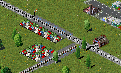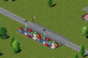 Zum Skin: der Kontrast ist sicher ein wenig extremer als beim Original, jedoch bringt das keinerlei Probleme. Im Spiel selbst stört der höhere Kontrast keineswegs. Das Tolle: die Kacheln nehmen indirekt die Struktur der Landschaft und Fahrzeuge auf, weil sie beinahe identisch mit den Simutrans-Kacheln sind.