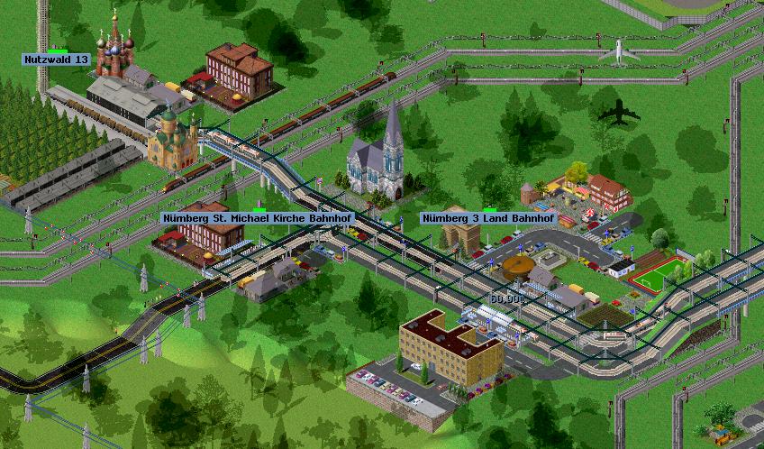 Wer von kalten Norden in den sonnigen Sueden moechte, kommt - im wahrsten Sinne des Wortes - an Nuernberg nicht vorbei. 8) Recht klein angefangen versammeln sich hier mittlerweile 4 Gleise Kopfbahnhof Hochgeschwindigkeitstrasse, 13 Gleise Kopfbahnhof Transrapid, 4 Gleise Durchgangsbahnhof Maglev und ein Hafen. Da die Sache mit den Wegpunkten/Haltestellenauswahl bei Flugzeugen irgendwie etwas bloed ist, kommen noch 5 Flueghaefen mit 10 Lande/Startbahnen hinzu 8o Umgesetzt werden hier 300.000 Befoerderungen im Monat(?); es ist nach oben noch Luft und Potential :]