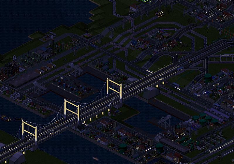 Die Autobahn kommt von Moskau und unterquert Budapest mit zwei Abfahrten und geht über Vilnius nach Stockholm weiter. Sie wurde überhaupt nur gebaut um den ruinösen Autozug Moskau-Budapest zu ersetzen - irgendwie ist es mir nie gelungen, Gewinne damit zu machen. Die Autotransporter rentieren sich dagegen prächtig. Die ganzen Kanäle dienen nur dazu zu verhindern, daß die Stadt meine Autobahn okkupiert und eine Stadtstraße daraus macht.
