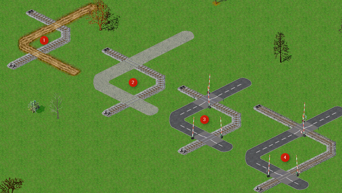 4.) Bahnübergänge werden durch eine neue bzw. alte Version ersetzt. Passiert während des Spiels, nicht beim laden. Vorrangig wenn kurz vorher ein neuer Bahnübergang verfügbar wurde. Es geschieht nicht immer und nicht mit jedem Bahnübergang, also willkürlich, ohne System.