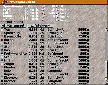 Nochmals zur Warenliste: Kann man die 5 Grössen oben auch in dieser Darstellung koppeln? Meist kenne ich die Geschwindigkeit eines Fahrzeugs umd möchte wissen, wie der Umsatz ausfällt - ausserdem kann man bei grossen Wertbereichen den Schnelllauf einschalten.