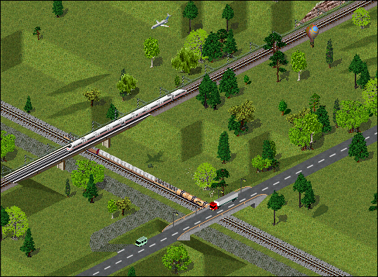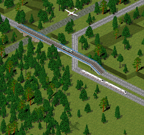 Wie man sieht, werden eifrig neue Fahrzeuge getestet. Der ICE rauscht in diesem Moment über eine moderne und recht zweckmäßig designte Brücke.