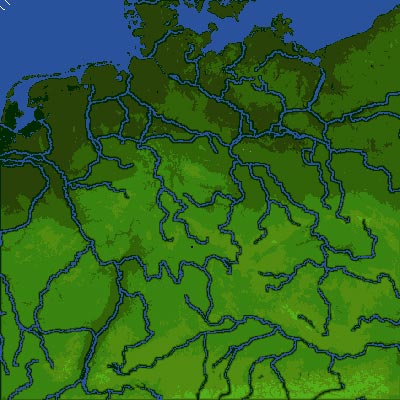 Germany_WS: Deutschlandkarte mit allen wichtigen Wasserstraßen. Die meisten sind schiffbar, einige müßen noch per Geländeabsenkung schiffbar gemacht werden. Grundwasserhöhe auf 2 stellen.